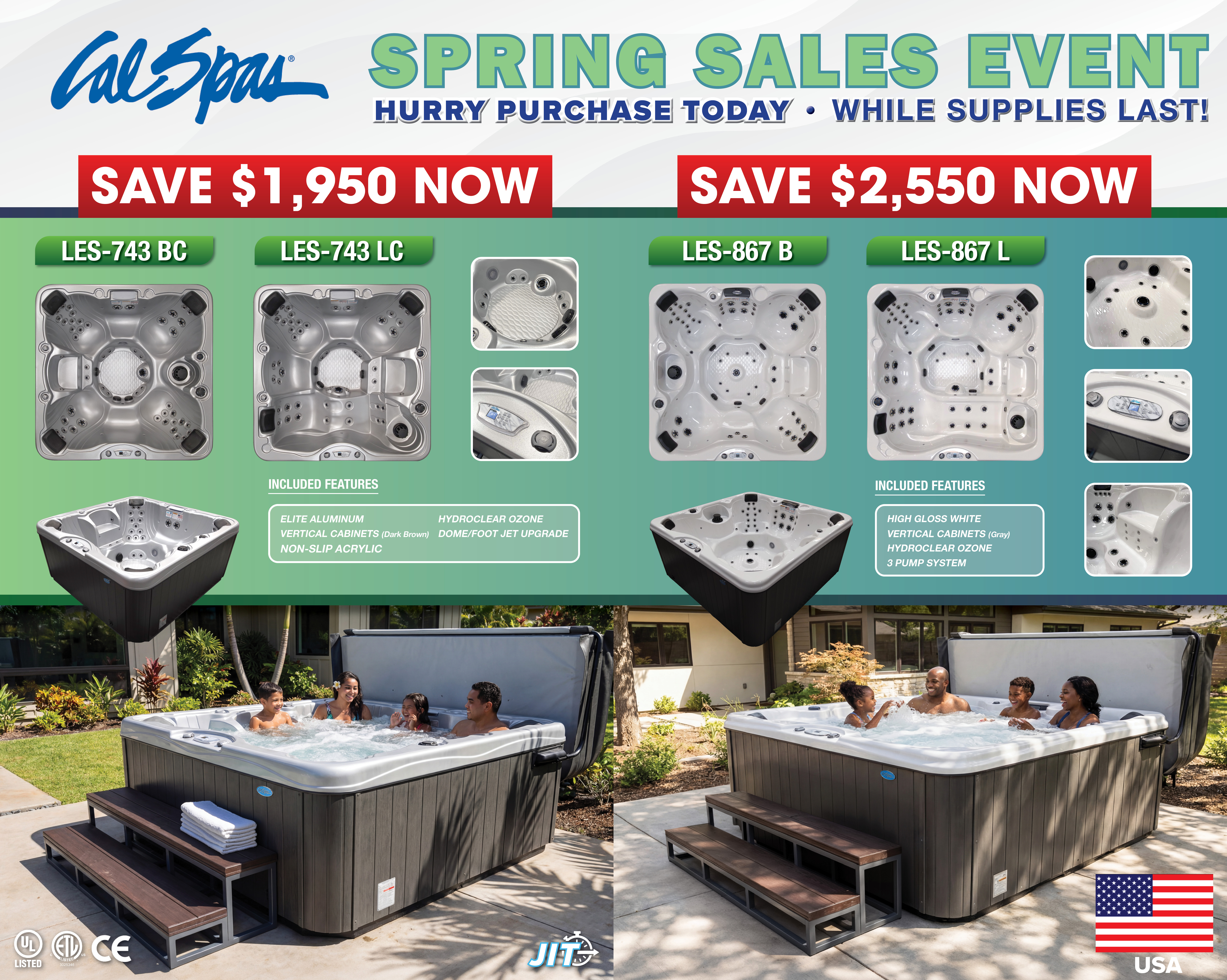 Cal Spas also carries the CE Certification marking with pride. This declaration certifies that our product meets all applicable provisions set by the European Union.